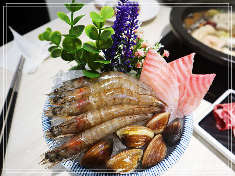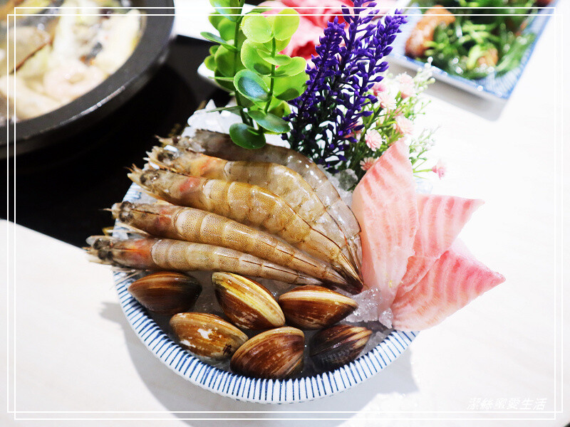 蝦子個頭雖不大,但Q彈新鮮,鯛魚片超厚實!不會薄切到一入湯裡就化開失蹤撈不到XD,份量很有誠意。