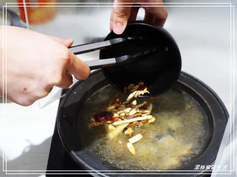 我是選擇燒全酒啦XD,所以服務人員會倒光整瓶米酒後再加入中藥材。