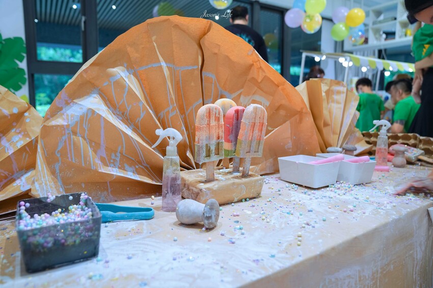 這次的五感探索內容有:恐龍考古、恐龍清涼果凍盆、冰淇淋小舖