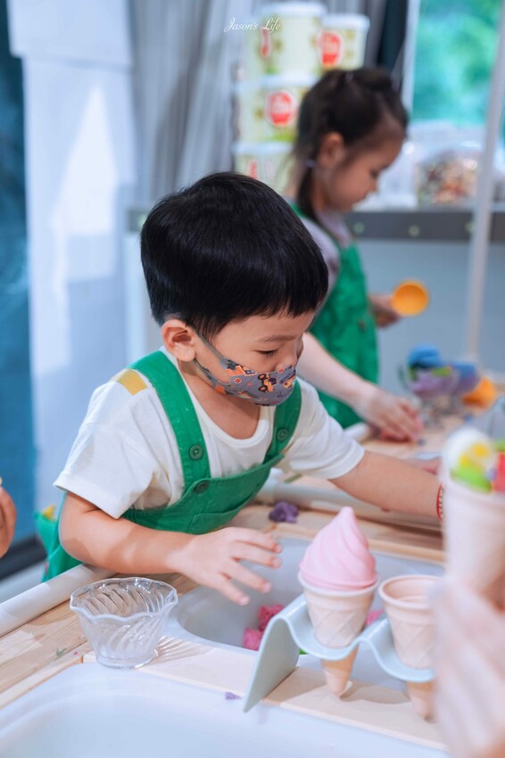 使用多顏色的黏土,小朋友憑著自己雙手填裝到甜筒內