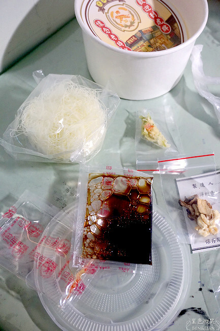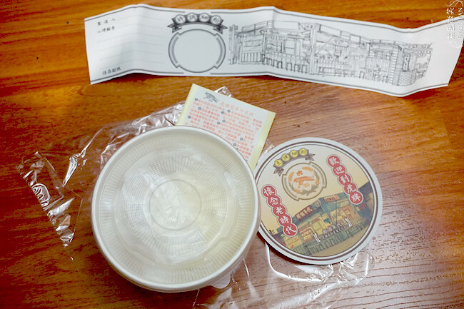 蓋上虎牌印章後,紙張黏在米粉碗外,接著塑膠套住碗合成一體,就完成啦!