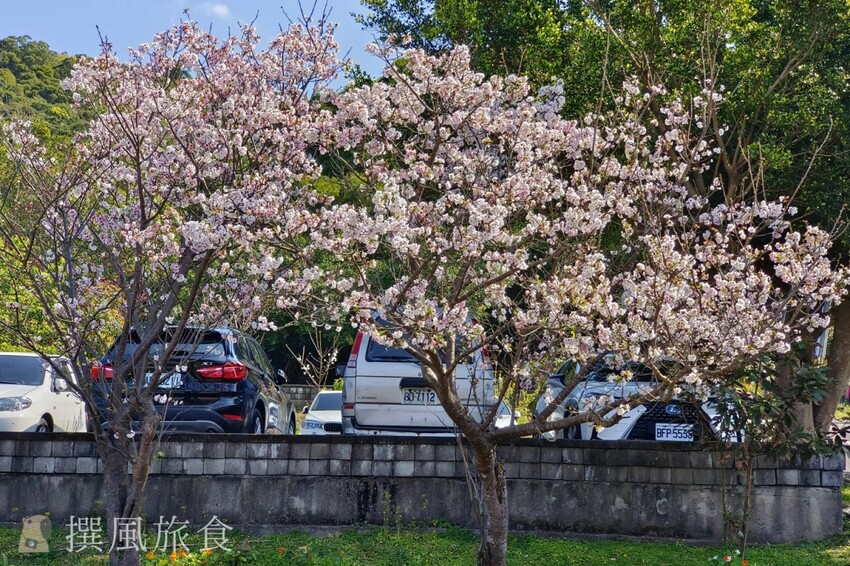 至中正山停車場後有幾個涼亭可以休憩,撰風是在3月前來的,那時盛開的鳶尾花與墨染櫻真的非常讓人驚豔,還有些許殘留的山櫻花,雖然花量不多,但盛開也是非常美的,坐在涼亭吹風吃午餐賞花,真的非常愜意,我在這邊休息了非常久。若開車的人也能直接停在中正山停車場再往觀景台,大約也只需要15分鐘即可登頂。