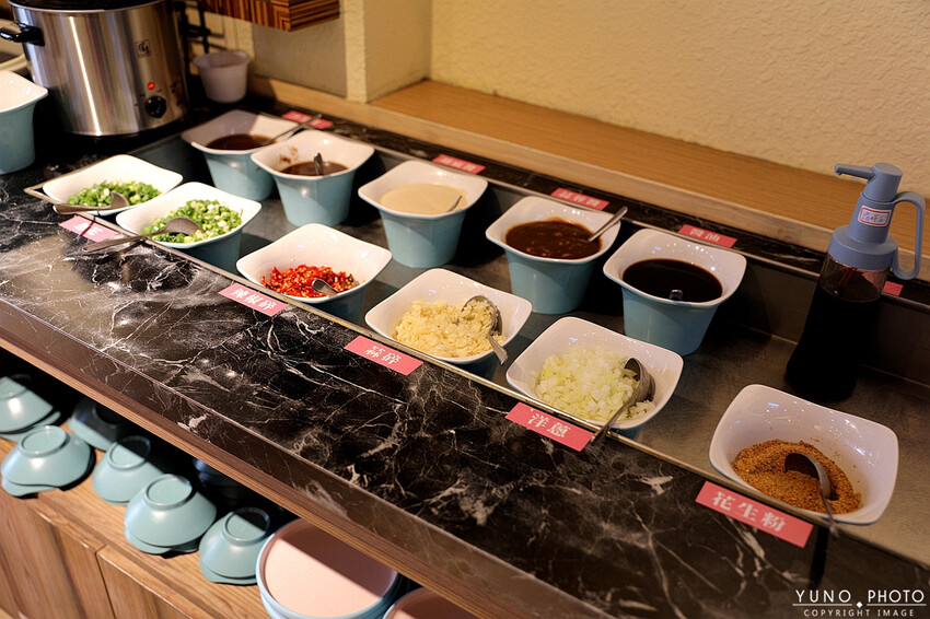 沾醬區也整理得很乾淨提供白醋、醬油、蔥花、辣椒、沙茶醬…等 應有盡有 自助式取用