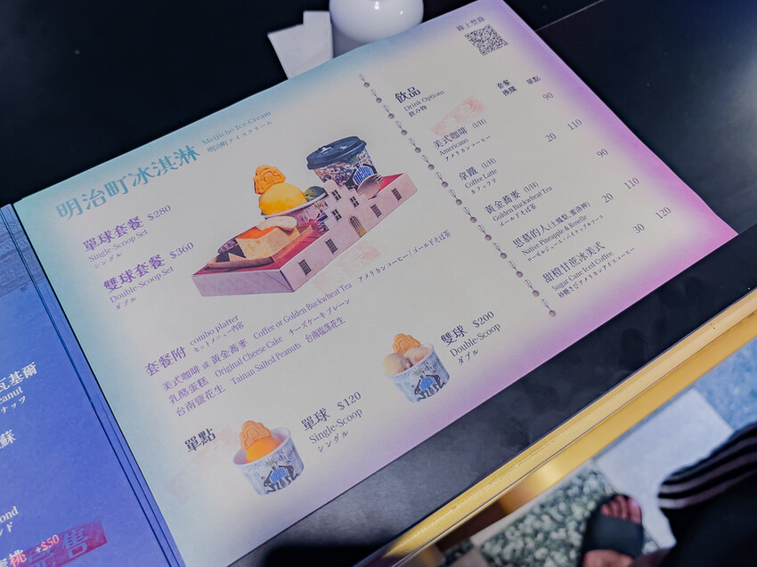 ▲一樓有榻榻米用餐區,需先預約,低消是380元,有提供「大正浪漫」、「關子嶺之戀」與「明治町帶我走」三款冰淇淋沙龍,趁開門的時候偷拍一張。