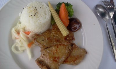 個人覺得餐飲內容倒不是山上人家的重點,以排餐一份390元起跳來說算是還過得去,我倒是頗喜歡它們家的濃湯,玉米和馬鈴薯很豐富,至於我們點的丁骨烤豬排和醬油薑汁煎豬排的肉質頗為軟嫩不柴,配菜可能是農家自種,只川燙無拌炒等過多調味,倒也吃得出原味的甜,至於飯量對成年男子來說似乎不夠飽足............