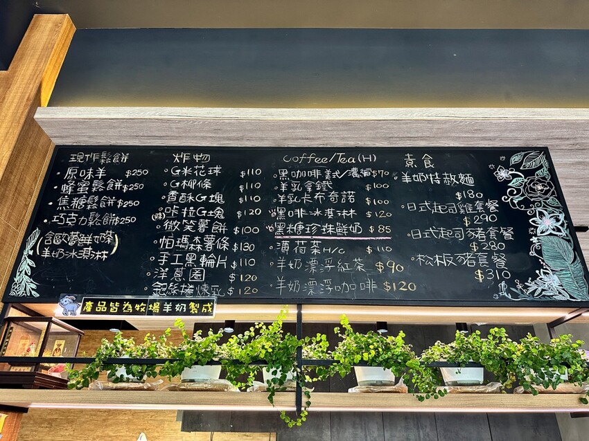 羊奶蛋糕、羊奶酪、羊奶冰淇淋、羊奶茶、拿鐵咖啡、…