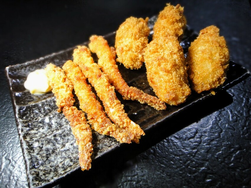 「炸蝦」則不裹過多的粉,入口後蝦肉肉質細嫩,甘甜又豐腴,海味十足;「炸牡蠣」選用新鮮飽滿的牡蠣,炸到表面金黃酥香,裡面細嫩柔滑,還可佐上塔塔醬做搭配享用。