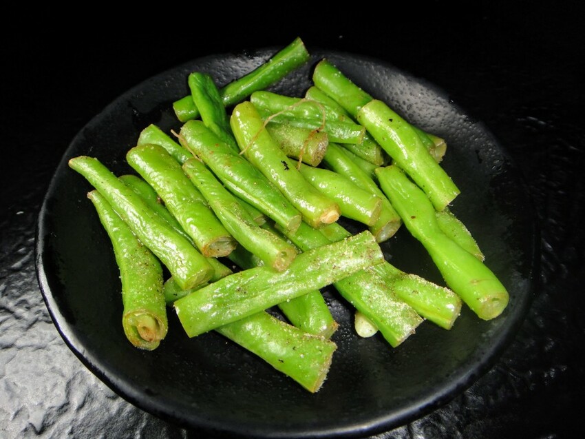 青綠色的「四季豆」以椒鹽的調味,入口後清爽酥脆,給人滿滿的營養。