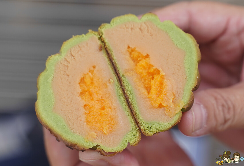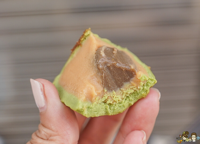 使用抹茶桃山皮包覆內餡,可以吃到軟Q麻糬口感