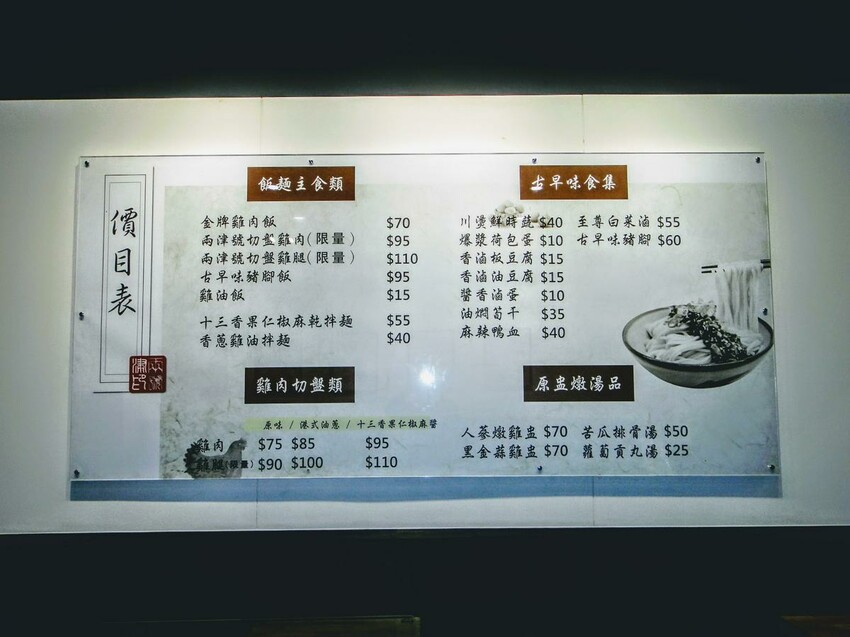 「兩津號雞肉飯」主要販售飯麵主食類、各項古早傳統美味小菜、雞肉切盤、原盅燉湯品,價格實惠且用料實在,網路口碑俱佳。