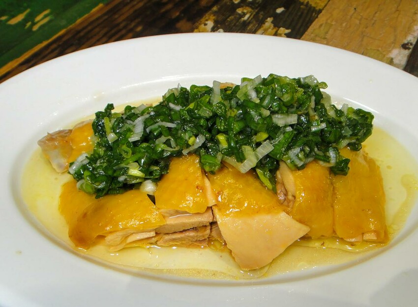 「雞腿切盤」一上菜就吸睛!金黃雞皮鮮豔欲滴,雞肉緊實Q彈,淋上滿滿的港式油蔥、雞油香氣撲鼻。大口咬下,雞腿肉Q彈扎實,油蔥鹹香在舌尖恣意綻漾,還能補充滿滿纖維質,每次的咀嚼都是幸福體驗,是必點的一道單品。