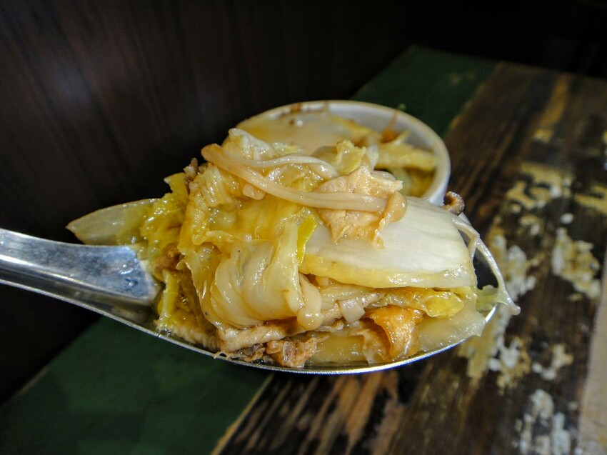 淋上雞油的白飯吃起來鮮甜、鹹度適中,再將爆漿的荷包蛋輕輕搓破,讓蛋黃與白飯均勻與白飯混入,又是另種醇厚濃香。高麗菜清脆爽口、青蔥清香濃郁,多項食材交織出細膩輕柔的風味,讓人意猶未盡。