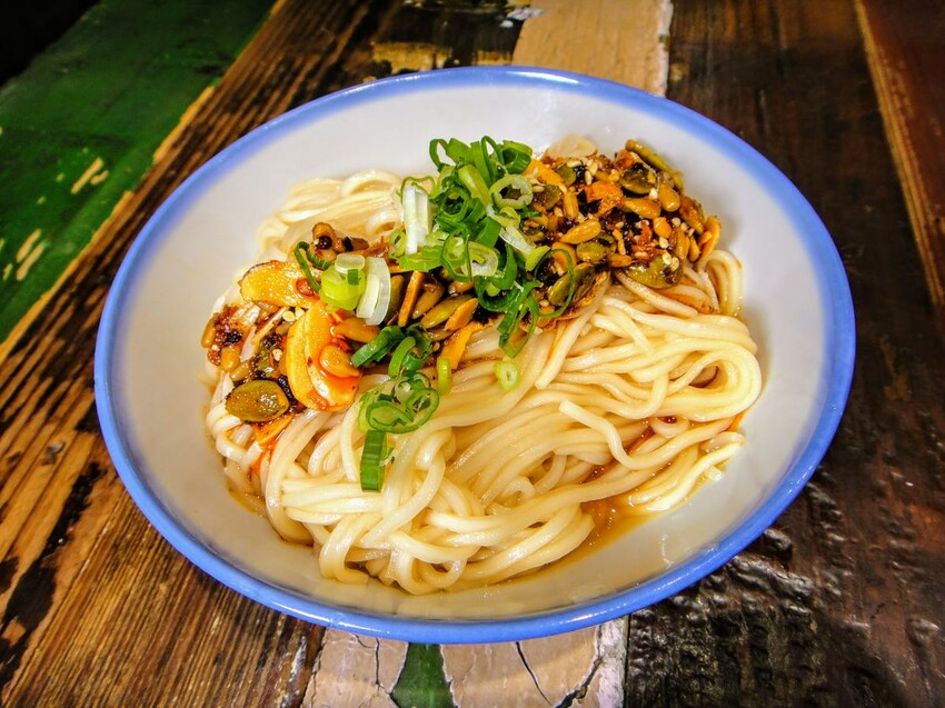 椒麻醬加入花生、青蔥,混合拌入細麵中,色菜更顯繽紛!椒麻香味直衝鼻腔,細麵微辣口感好開胃,鹹香混合麻辣滋味在嘴裡打轉,讓人大呼過癮。