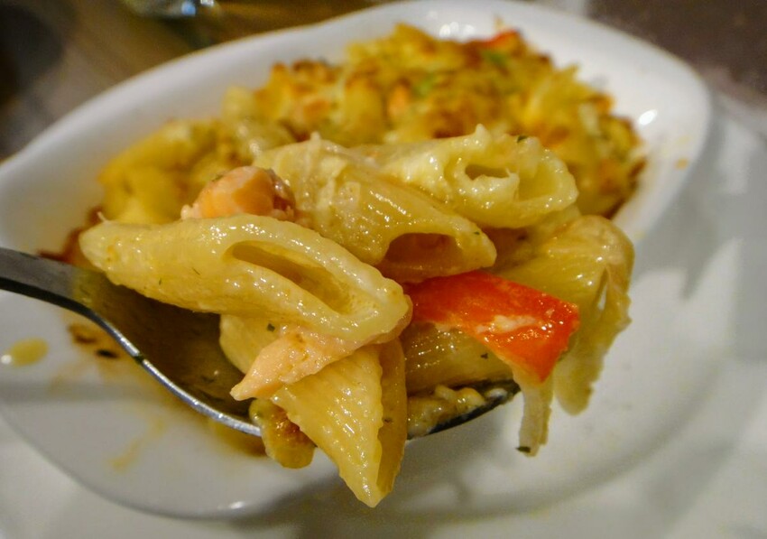 喜歡吃焗烤的可加價加上焗烤,店家會將義大利麵換成筆管麵,「奶油燻鮭魚焗烤麵」以白醬為基底,白醬使用高成本的安佳鮮奶油製作而成,還有滿滿彩椒、豆子等時蔬,再加入起司焗烤把食材精華緊緊鎖住,焗烤後燻鮭魚香氣瀰漫了整個味蕾,和筆管麵完美結合,完全征服人心。