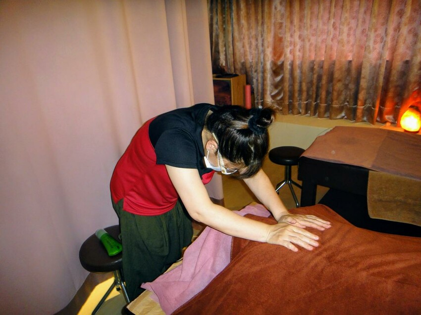 身體按摩的部分,套裝行程十分完整從頭按到腳,首先先從鬆背開始,按摩師會先詢問客人的力度是否剛好,並會依照每個人的感受程度進行調整,像團子是久坐辦公室的人,按摩師也針對肩頸的部份特別進行加強。