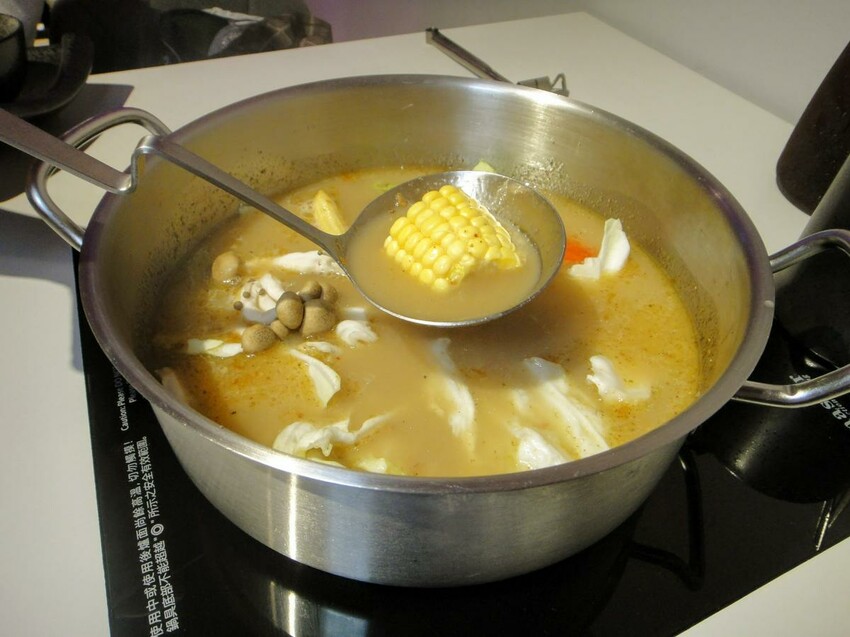 「胡椒黃金雞湯」入口後胡椒的香氣四溢,口感有一點微微的辛辣,食材煮下去,不用沾醬就十分夠味。