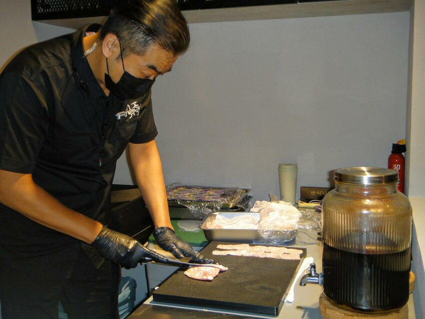 一樓開放式的料理台,彷彿如同夜店的DJ台,主廚會在此化身美食DJ,用精湛的刀工及料理手法,將醬料、小菜、肉品一一料理製作出來,現切的肉品是最新鮮及美味保證。