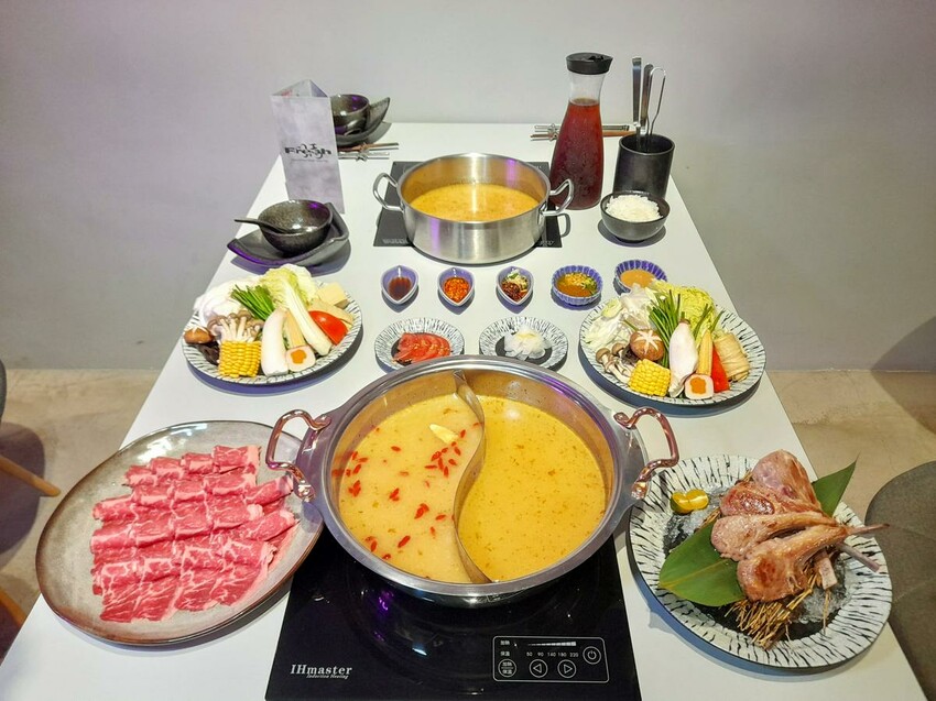 來到店家,從門口就能感受到不同,店家裝潢以灰色為基底融合工業風,搭配迷幻的紫色螢光燈,耳邊也不時傳來電音樂曲,有一種來到夜店及餐酒館的氛圍,也吸引許多網紅網美朝聖打卡,有師大最潮的火鍋店美稱。