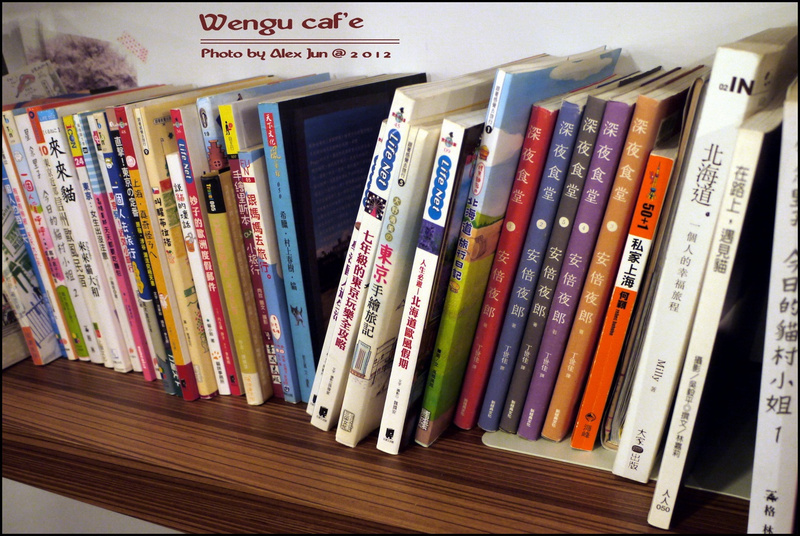 旁邊有個書櫃,一樣擺放了各式的書籍,