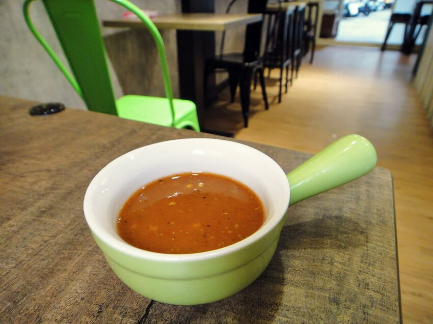 「墨西哥雞肉湯」這道湯品有些許的辣度!雞肉加入蕃茄醬、辣椒、洋蔥、番茄、黑豆熬成的暗紅色的湯,豐富配色彷如墨西哥國旗,微辣湯頭好開胃,鮮蔬爽口清新,是台灣少見的湯品,有興趣的朋友一定要來試試。