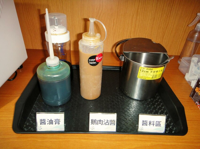 醬料及餐具採用自行拿取的方式,有點鵝肉的朋友一定要來一點店家特製的鵝肉沾醬,愛吃辣的朋友也可再加些辣椒醬,增香提味。