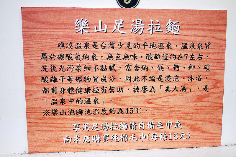 泡湯區座位前都有一塊說明的版子,