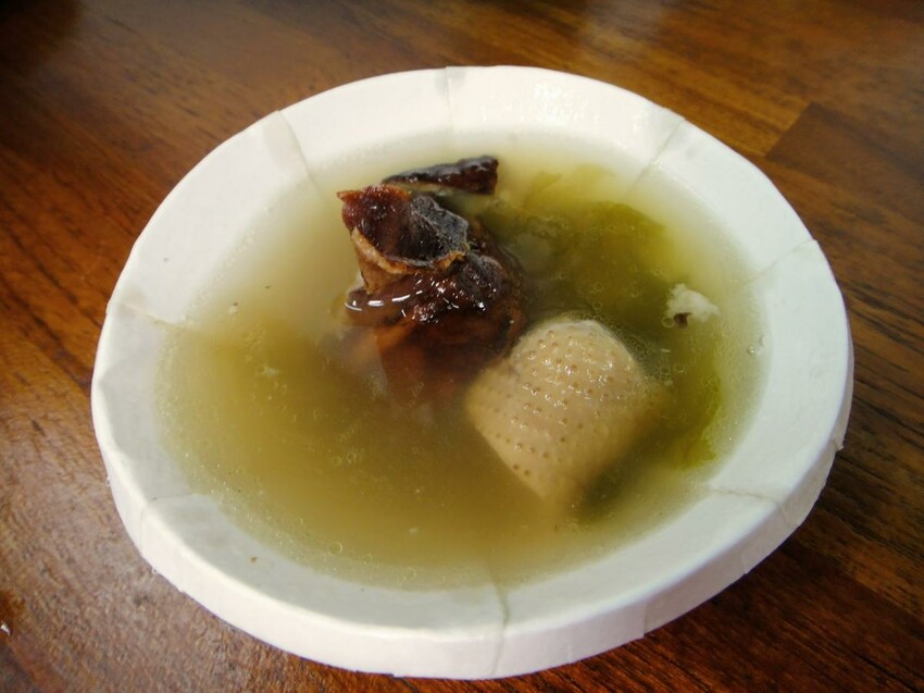 餐具、湯品及飲用水為自取,店內也提供每日例湯,當天為「鴨架酸菜湯」,湯頭鮮甜入味,我們每個人都喝了2碗以上。