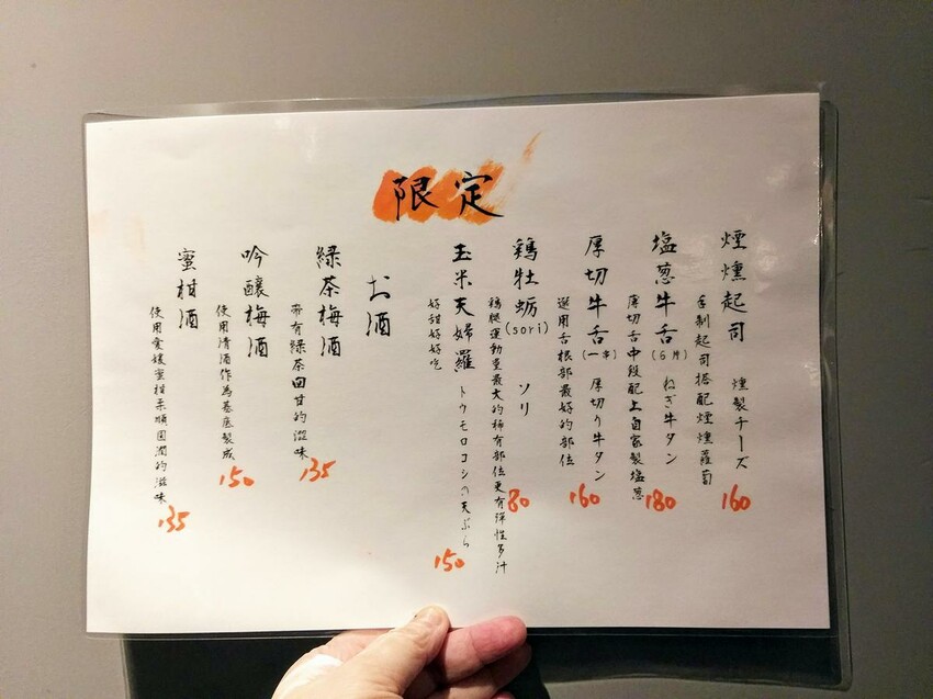 店家提供多種日本酒款,包含啤酒、果實酒、沙瓦、日本清酒、威士忌及無酒精飲品,店內有領有專業證照的唎酒師,喜歡小酌的朋友,也可以請店家進行推薦。因當天我們不能喝酒,故選擇無糖的「十六茶」、「烏龍茶」,搭配串燒享用,去油又解膩。