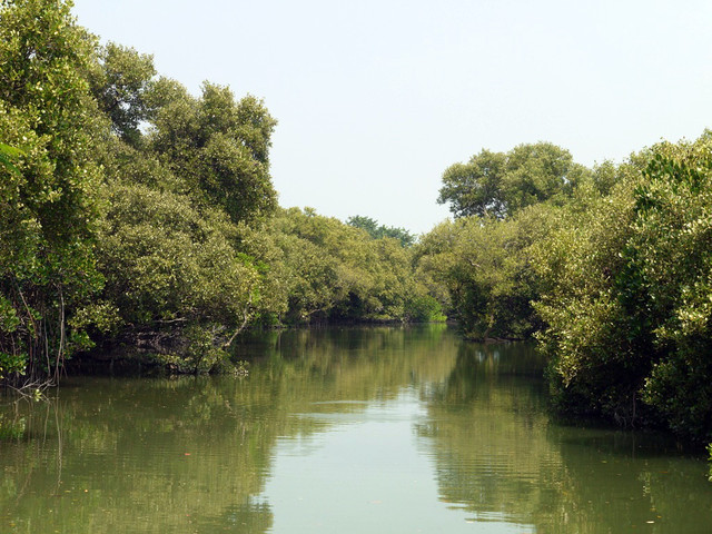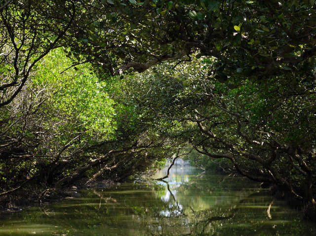 沿途可欣賞全省僅有的四種紅樹林(五梨跤、水筆仔、欖李、海茄苳)所構成的水上綠色隧道