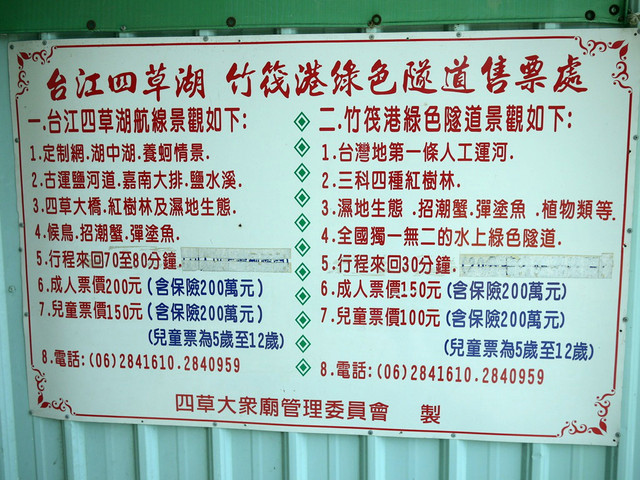 1.台江四草湖航線景觀:成人票200元,航程約7.80分鐘