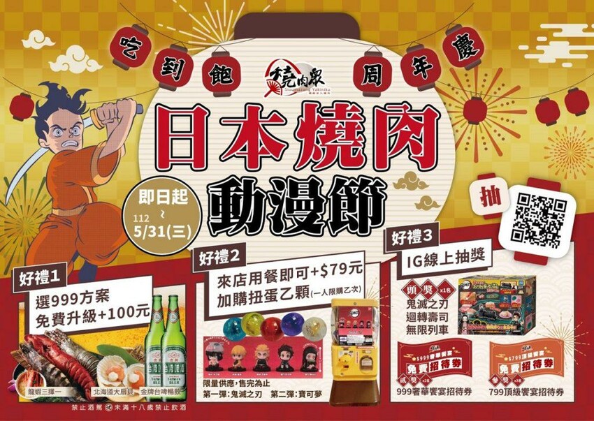 燒肉動漫節、鬼滅之刃抽獎、999免費升級
