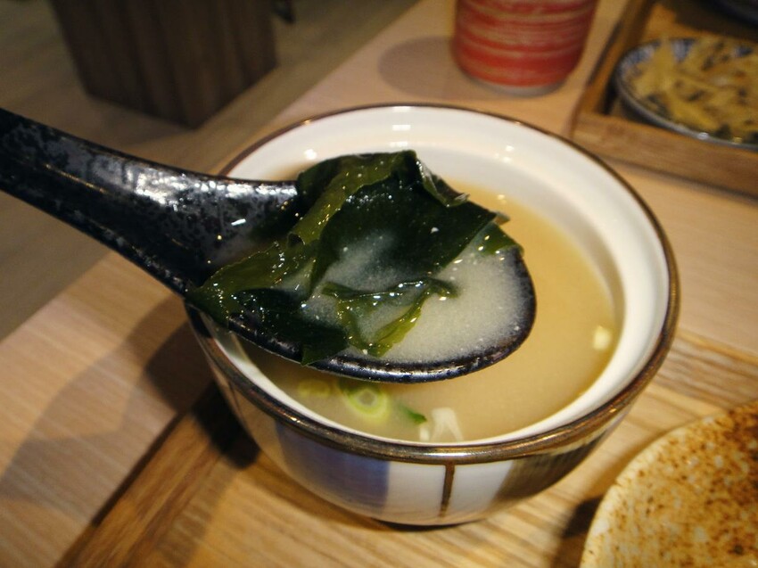 「貓仔味噌豚燒肉定食」讓一人也能享受燒肉美味!精選豬肉以特殊醬汁醃製,燒烤到微焦再灑上芝麻提味。豬肉肥美飽滿、Q彈緊緻,大口咬下好過癮。燒肉下方鋪上滿滿的生洋蔥絲,微微辛辣的口感十分對味,還能補充滿滿纖維質與營養。