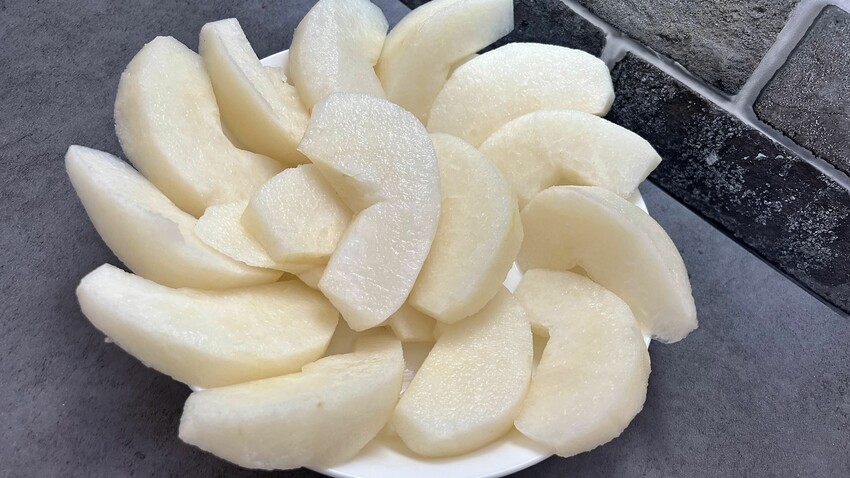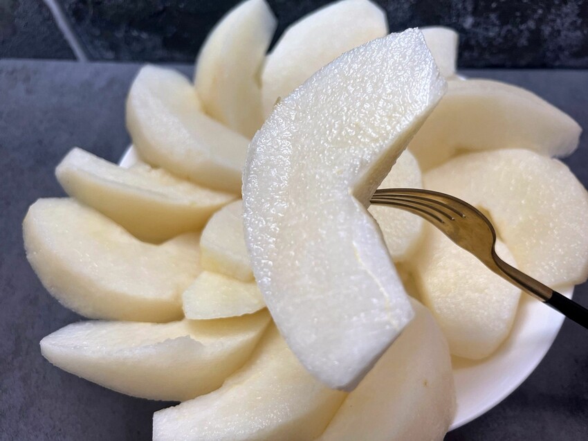 在切的時候可以感受到裡面的汁非常的多又飽滿,而且果肉呈雪白狀,非常好吃,一顆可以三個人吃😋✨,非常的消暑(下面照片是一顆的量喔~)