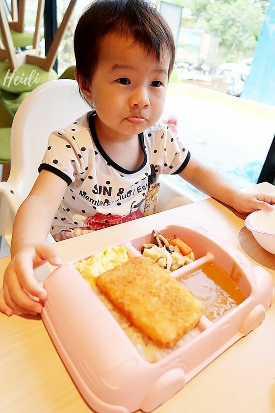 先來說兒童餐,飛力夢幻海洋兒童餐,鱈魚排咖哩飯+滑蛋+菜,