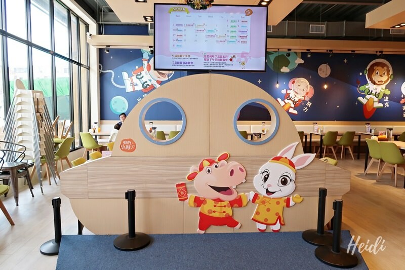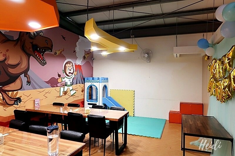 還有很多兒童餐椅,牆面的宇宙風格充滿童趣,生動活潑的環境,小朋友也很喜歡。