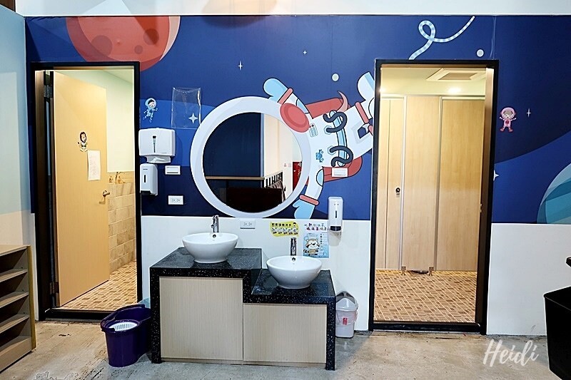 太空人廁所很可愛耶~ 他們很貼心設置兩種高度洗手台,低的給小小朋友用剛剛好。