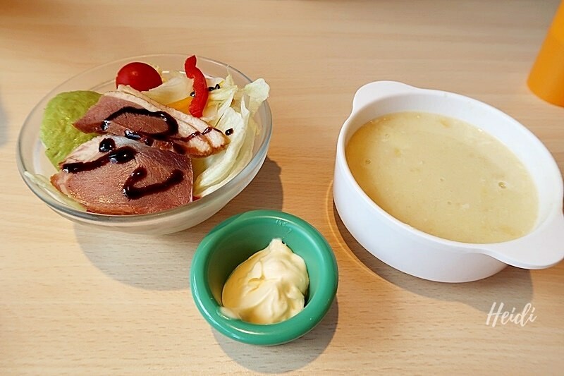 這沙拉不錯耶~ 燻鴨點綴很好。濃湯的口味不像外面那麼鹹,平常吃清淡口味的朋友很OK,