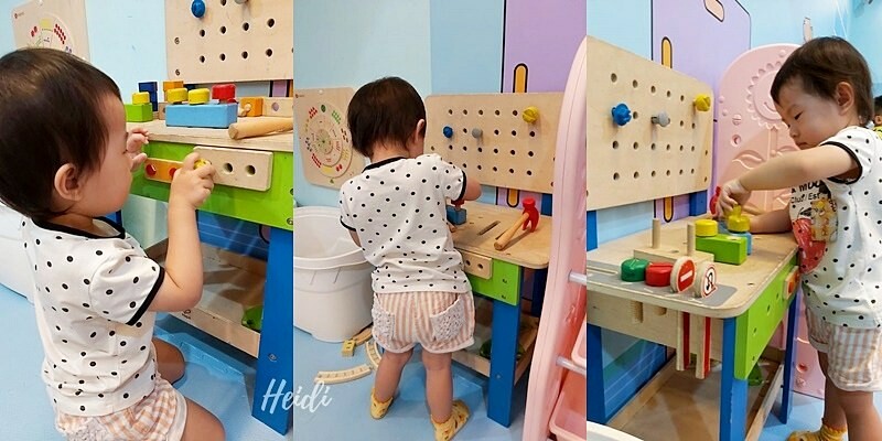 這個工作桌小饅頭玩很久,拆拆裝裝很有樂趣~ 還不想走XD