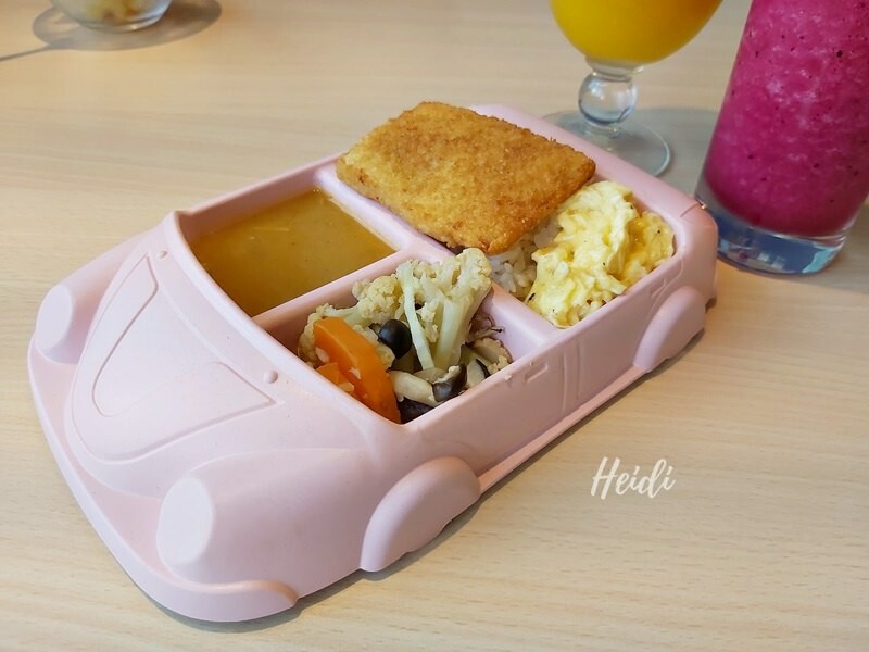 小饅頭看到車車造型的餐盤超興奮的!連叉子都有佩佩豬,很用心很懂得小孩子的喜好耶~ 比媽媽還會XD
