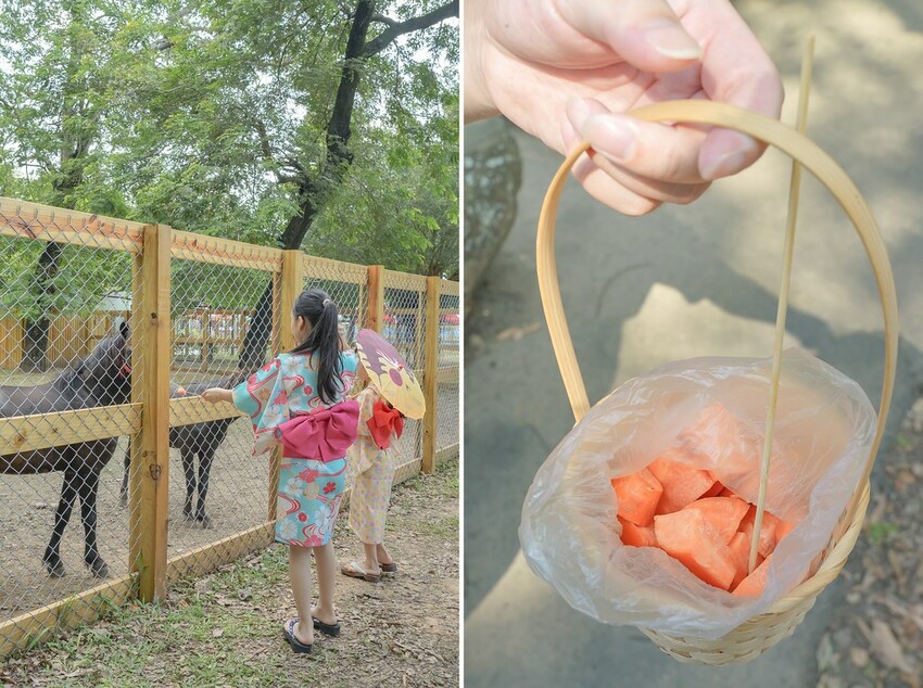 后里馬場經歷過疫情艱辛的時刻,覺得馬兒能夠符合這次京都嵐山文化祭的主題,也算是可以幫助馬場的營運。馬場內本來就有紅蘿蔔供民眾可以餵食,拿著長長的竹籤,插上紅蘿蔔就可以輕鬆餵食,很適合孩子們進行,然後馬場內有馬廄可以參觀,大家千萬別錯過!