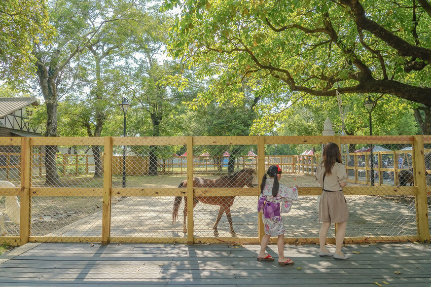 來到后里馬場的環境,林蔭的石砌步道,再搭配上日式木屋,穿上夏日浴衣及拿起鮮豔的紙傘,彷彿走進日本鄉村街頭呀!其實現場看到許多孩子們換上浴衣,實在太可愛了