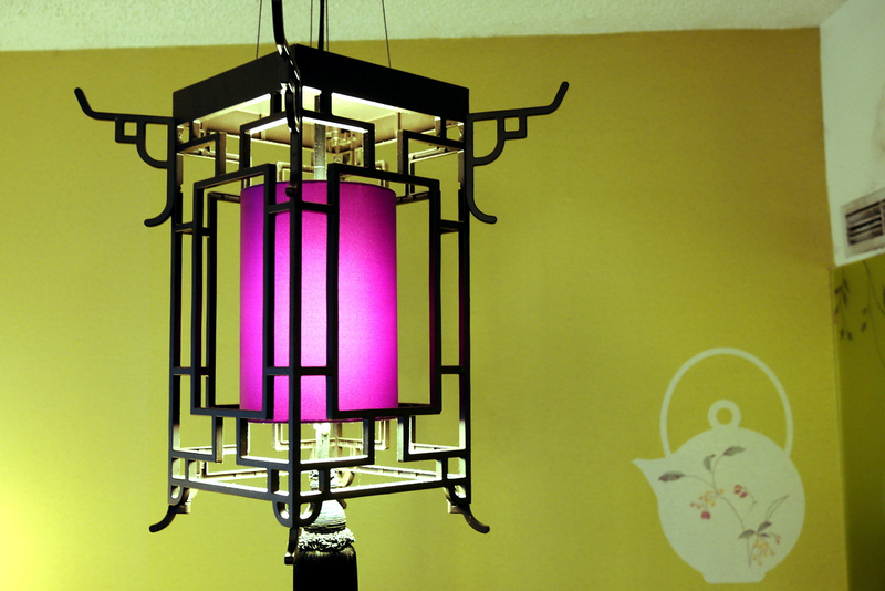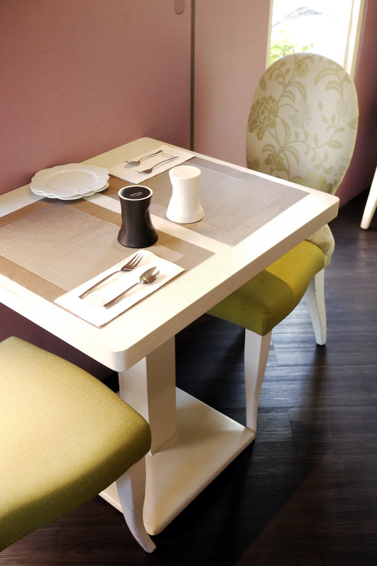 整個餐廳以薰衣草紫及抹茶綠為主要色調,