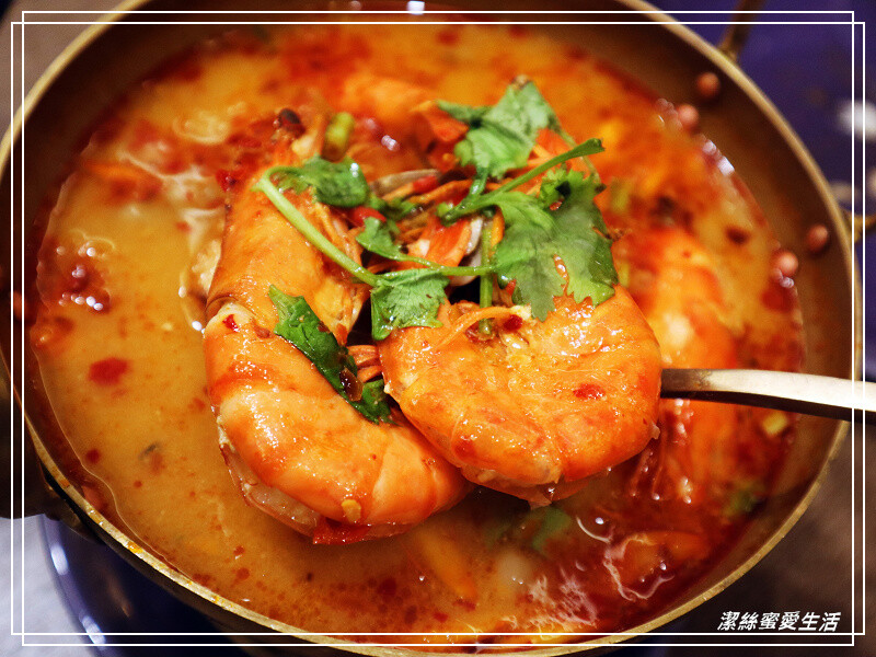 冬蔭功也是泰式經典湯品,NARA Thai的冬蔭功湯喝起來不只是酸辣,還有多種香料融合,複合香氣層疊,裡頭有四隻大蝦,又有股海味鮮甜。