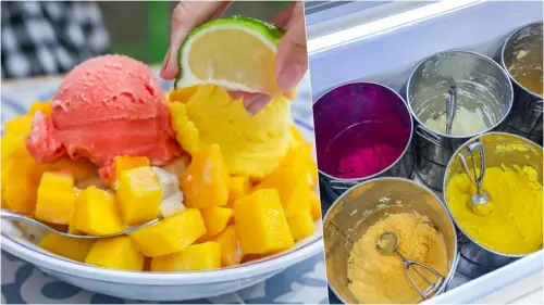 覓糖的招牌是七彩粉粿,我的影片裡有點七彩粉粿65元,朋友說真的很不錯的價格,而且還吃得出來七種口感,還有宇治金時抹茶粉粿雪花冰80元,抹茶濃郁還有煉乳,搭配綿密紅豆,超好吃,經濟實惠的甜點,又繽紛漂亮。