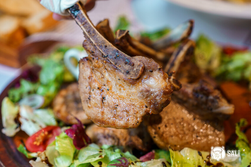 視覺令人驚豔的帶骨戰斧,先煎再烤先將油逼出來再炙烤,端上桌時滿是迷人香氣,一旁搭配著生菜與馬鈴薯,整體份量很有誠意