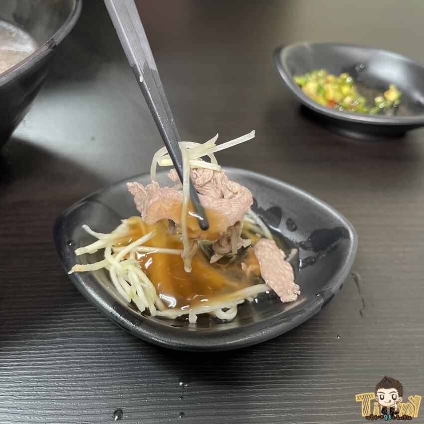 這是小米二訪才吃到的臺南溫體牛肉湯(170元),店家選用當天現宰的溫體牛肉,用牛大骨及多種中藥、蔬果熬製的高湯滾燙燙的瞬間沖下去~