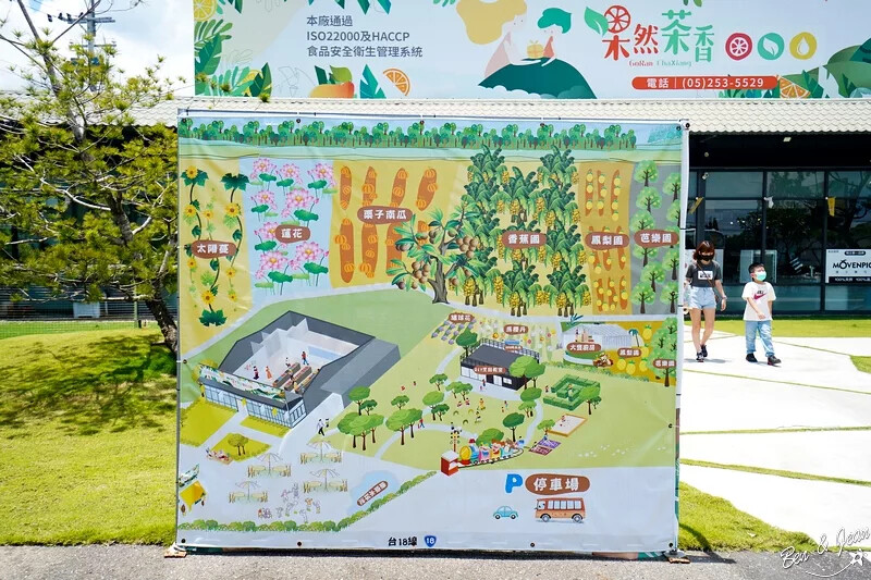 果然茶香觀光園區,是一處以芭樂為主題的休閒園區,鮮豔巨型冰淇淋+珍奶杯地景,非常適合拍拍美照!門票100元可全額折抵消費,110公分以下免門票!園區規畫多樣彩繪藝術、及拍照場景。主要分為室內區與戶外區。戶外設有不少兒童設施:賓士卡丁車、跳格子、迷宮、小火車、撿雞蛋、玩沙,非常受小朋友歡迎。室內也可以採購一些果乾及一些特別的伴手禮。果然茶香觀光園區離中埔交流道不遠,附近有星巴克中埔穀倉店、嘉義旺萊山愛情大草原,這次入住詩情夢幻城堡-超親子主題旅店,更是往來阿里山台18線的必經之地呢!