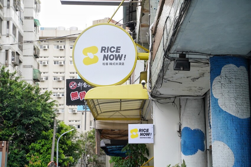 「RICE NOW粒客韓式米漢堡」白皙簡約風格的韓式裝潢在巷弄裡相當顯眼,雖是以外帶為主的韓式米漢堡店,但還是有提供8個座位可以內用。