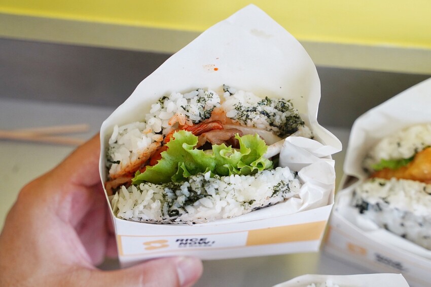 全台第一間韓式米漢堡你專賣店你吃過了嗎?白皙簡約風格的韓式裝潢在巷弄裡相當顯眼,走過、路過不易錯過!「RICE NOW粒客韓式米漢堡」將米漢堡融入海苔絲,再包入各式泡菜、燒肉片、醬燒炸雞、生菜等不同口味配料,搖身一變就成了韓式風格的米漢堡!每一顆都是沉甸甸份量感十足,還附贈無糖茶,整體價格比起連鎖店米漢堡還要划算許多,重點是「RICE NOW粒客韓式米漢堡」下午沒休息,買來當正餐、下午茶都很適合。