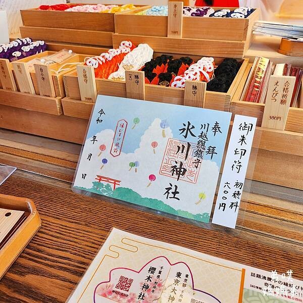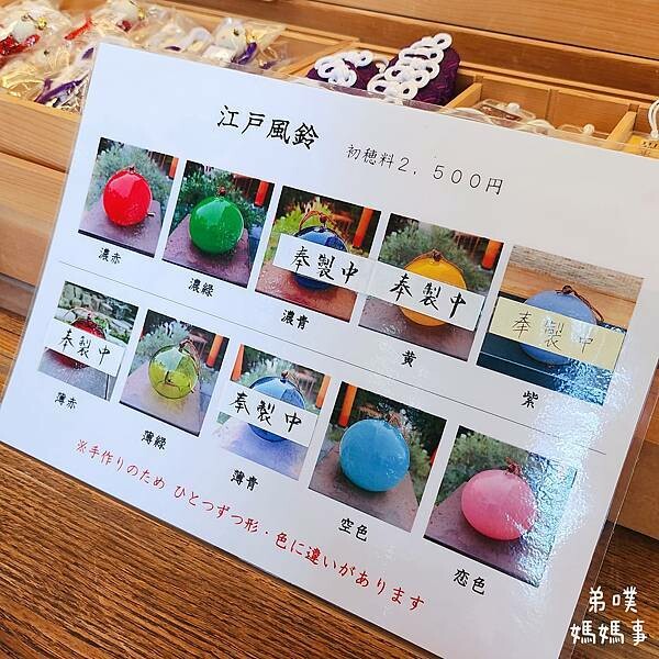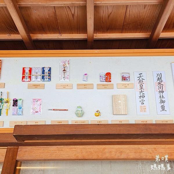 川越冰川神社授予所,除了有很熟悉的御守和御朱印外,比較特別的是還有販售風鈴。 (東京市區的神田明神神社也有販售風鈴>>【日本‧東京】神田明神/神田神社│東京十社、可以看到晴空塔!神田明神文化交流館內多樣神社周邊、伴手禮、有餐廳可用餐,投幣式御守販賣機 )